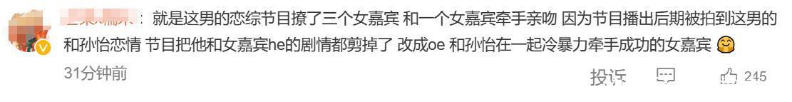更令东谈主诟病的是,滕光蓝本东谈主在跟孙怡看演唱会之前,还在进入恋综,况兼跟多个女嘉宾朦拢互动,最终还跟其中一位名叫“沛沛”的女嘉宾牵手胜仗,两东谈主还亲吻。然则最终播出的效果却有了变化,两东谈主莫得胜仗。