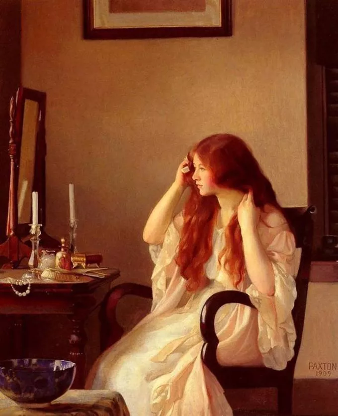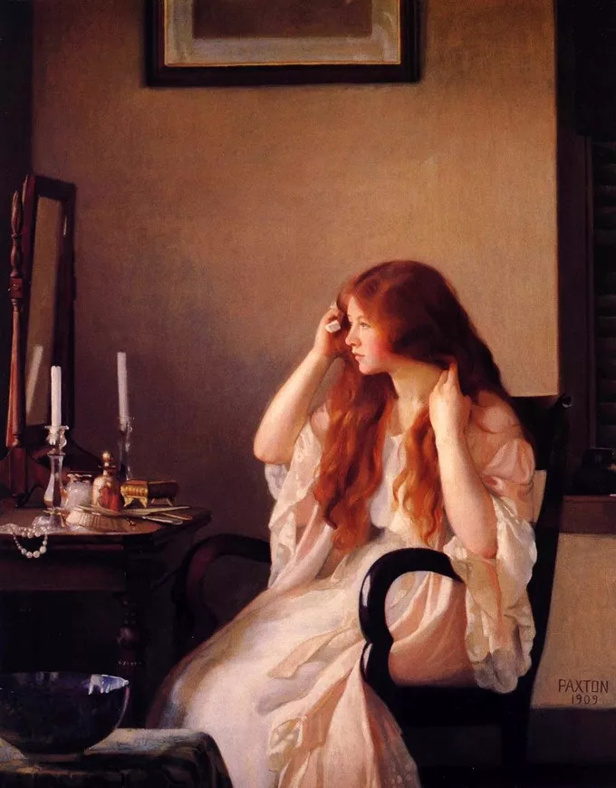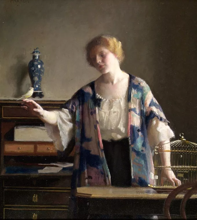帕克斯顿1869年6月22日出身于好意思国,享年72岁。他18岁得到了考尔斯艺术学校的奖学金,是个收获优异学生。帕克斯顿与他的配头是在学校浮现,两个东谈主皆艺术皆至极醉心,临了在1896年他与配头伊丽莎白·沃恩·奥基订婚。