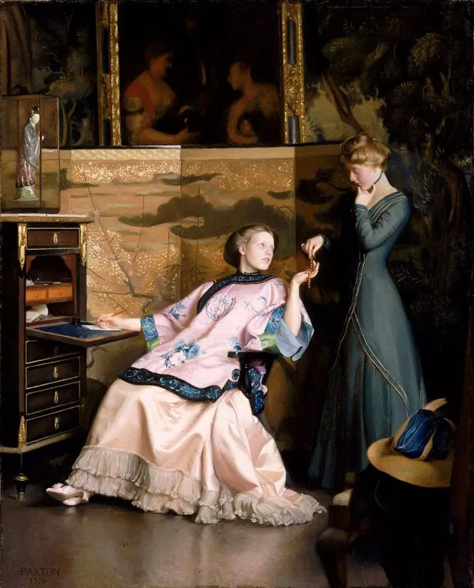 帕克斯顿的一世绘图了许许多多的著名作品,如“红扇”是绘图他配头的肖像作品,“一位女士的肖像”和“好意思国东谈主的肖像”皆是他在1881年和1877年的绘图作品,帕克斯顿的作品浩繁是绘图东谈主物,以女性为主,有显豁优雅的女性,也有女仆。他的作品丰富多彩,磨蹭中蕴含着具体。